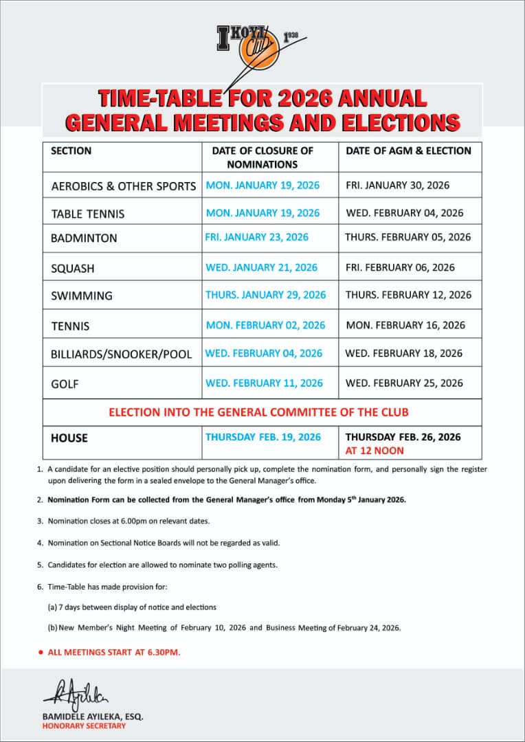 TIME-TABLE FOR 2026 ANNUAL GENERAL MEETINGS AND ELECTIONS